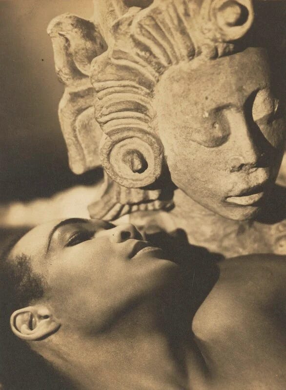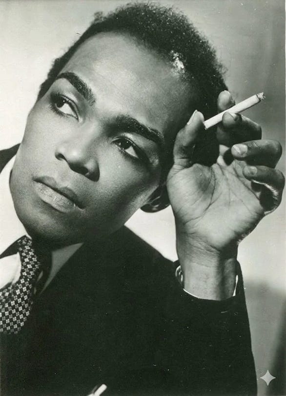 A reviewer for Stage and Screen announced in the Summer of 1947, “Berto Pasuka is the most colourful dance-personality since Isadora Duncan. Glamor-starved Europe greeted his continental tour with wild enthusiasm.” The reviewer, it seems, could not get glamour out of his head and photographs of Pasuka throughout his lifetime help elucidate. In some we see a soignée figure smoking in suits that might be expensively tailored or just dandified by Pasuka’s mere donning of them, in others the consummate maître de ballet behind the scenes. In others yet, we see him in the unearthly outsider roles he wrote for himself – a prophet set on flying to paradise, a philosopher-pianist trying to marshal living keys into harmony, a mystic priest in a blood rite. Never the romantic lead or everyman protagonist. Take note: the foundations of this Black British art were surrealist, phantasmagorical, fabulous in the traditional sense of the word—less so kitchen-sink.